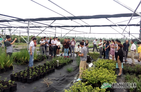 下午,杭州市園林綠化股份有限公司研發(fā)中心技術(shù)員劉華紅帶領(lǐng)大家來到畫境?徑山生產(chǎn)中心進(jìn)行實(shí)地參觀。結(jié)合研發(fā)中心開展的一個除草劑試驗(yàn),劉華紅向大家介紹了試驗(yàn)的設(shè)計(jì)思路、處理設(shè)置,展示了拔綠(Barricade)、莠去津(Atrazine)等4種除草劑不同濃度處理的除草效果,初步指出正常用量的拔綠對多種庭院植物容器苗的除草效果較好。