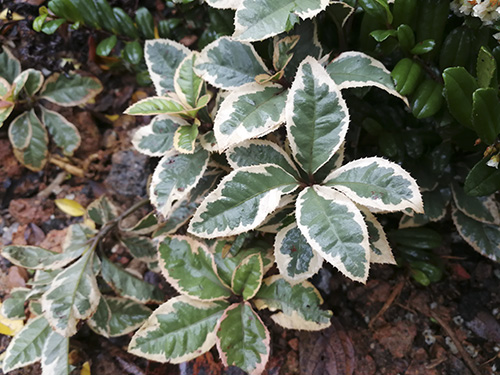為日本引進(jìn)品種,常綠地被灌木,植株低矮,帶有奶白色花邊,適合用于寄植和陰生花園營造,在半陰通風(fēng)濕潤不積水的戶外環(huán)境栽培比較合適,陽臺盆栽皆可。