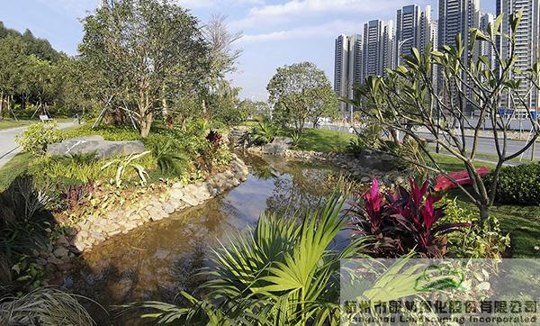 園林是一件藝術品,每一個園林作品都應該是獨一無二的。只有創(chuàng)新求變,精雕細琢,將植物配置、人文風情、景觀小品、地形起伏、空間變化等諸多因素有機融合,才能營造出富有地域特色和人文內涵的作品,避免城市園林造景的千篇一律。深圳鳳舉路項目秉承這樣的造園理念,在施工中注重對細節(jié)的打磨,不斷創(chuàng)新施工工藝和方法,堅持生態(tài)優(yōu)先,打造節(jié)約型園林,為周邊百姓營造出一個集景觀、人文、生態(tài)等功能于一體的綜合型公園綠地,為深圳市光明區(qū)生態(tài)宜居的城市環(huán)境建設做出了積極貢獻。